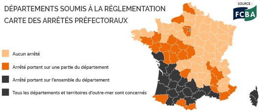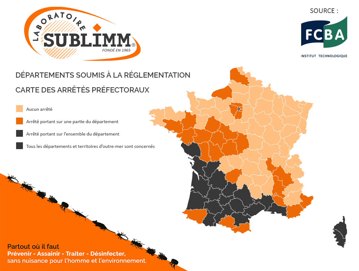 Ces décrets sont applicables sur l’ensemble des zones couvertes par un arrêté préfectoral ; suivant les départements, cela peut aller de la commune infestée jusqu’au département dans sa totalité.